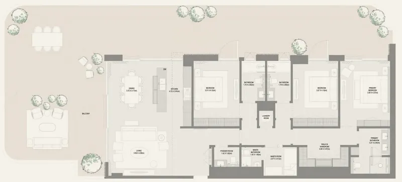 В комплексе представлены апартаменты с 1-3 спальными и дуплексы с 4 спальнями.